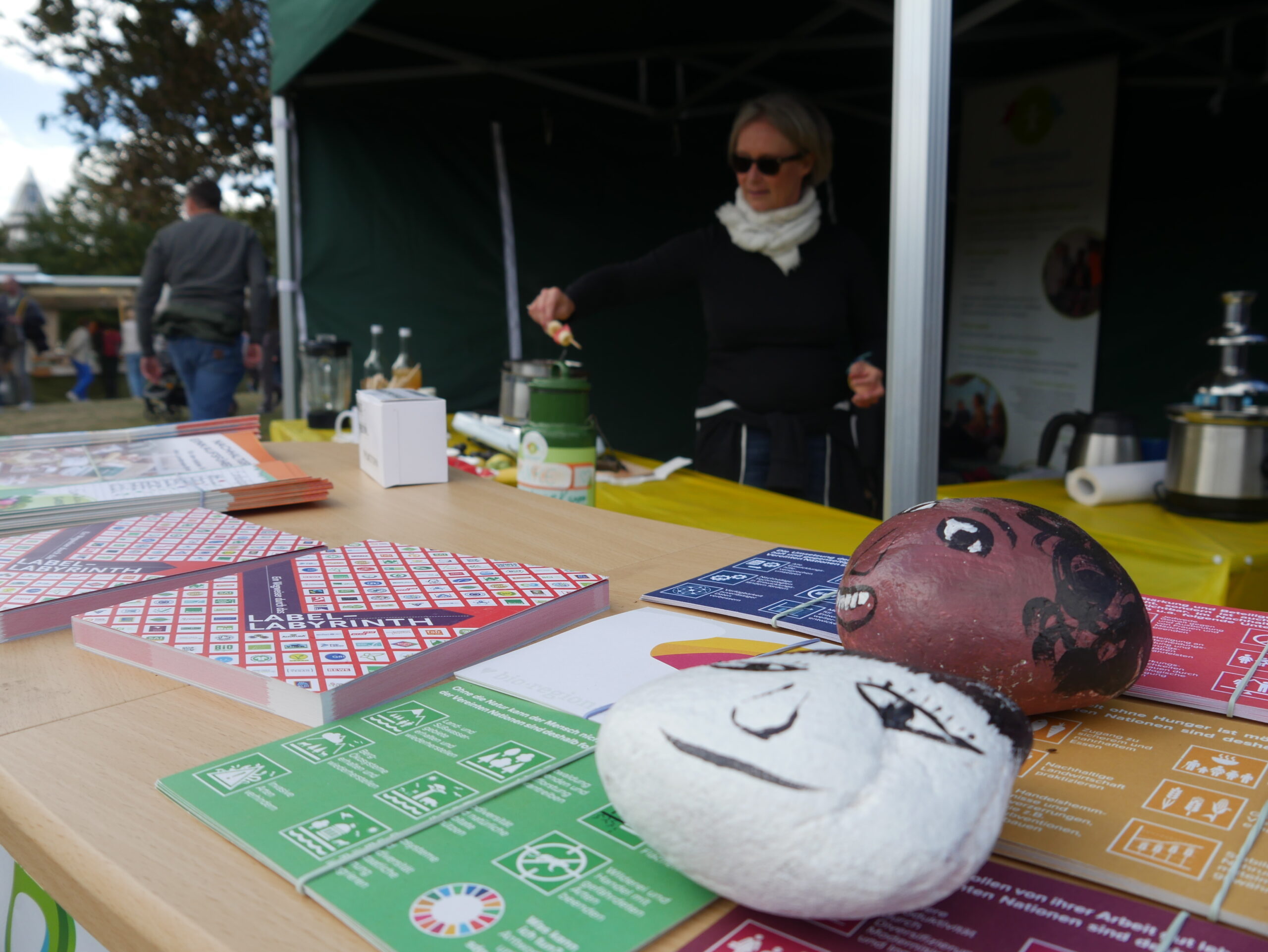 Mitarbeiter:innen und Engagierte aus seinen Mitgliedsorganisationen informierten vor Ort zum Netzwerk sowie zu Nachhaltigkeits- und Gerechtigkeitsthemen. Sie vernetzten sich mit weiteren Akteur:innen des Festes und suchten den Austausch mit interessierten Besucher:innen.