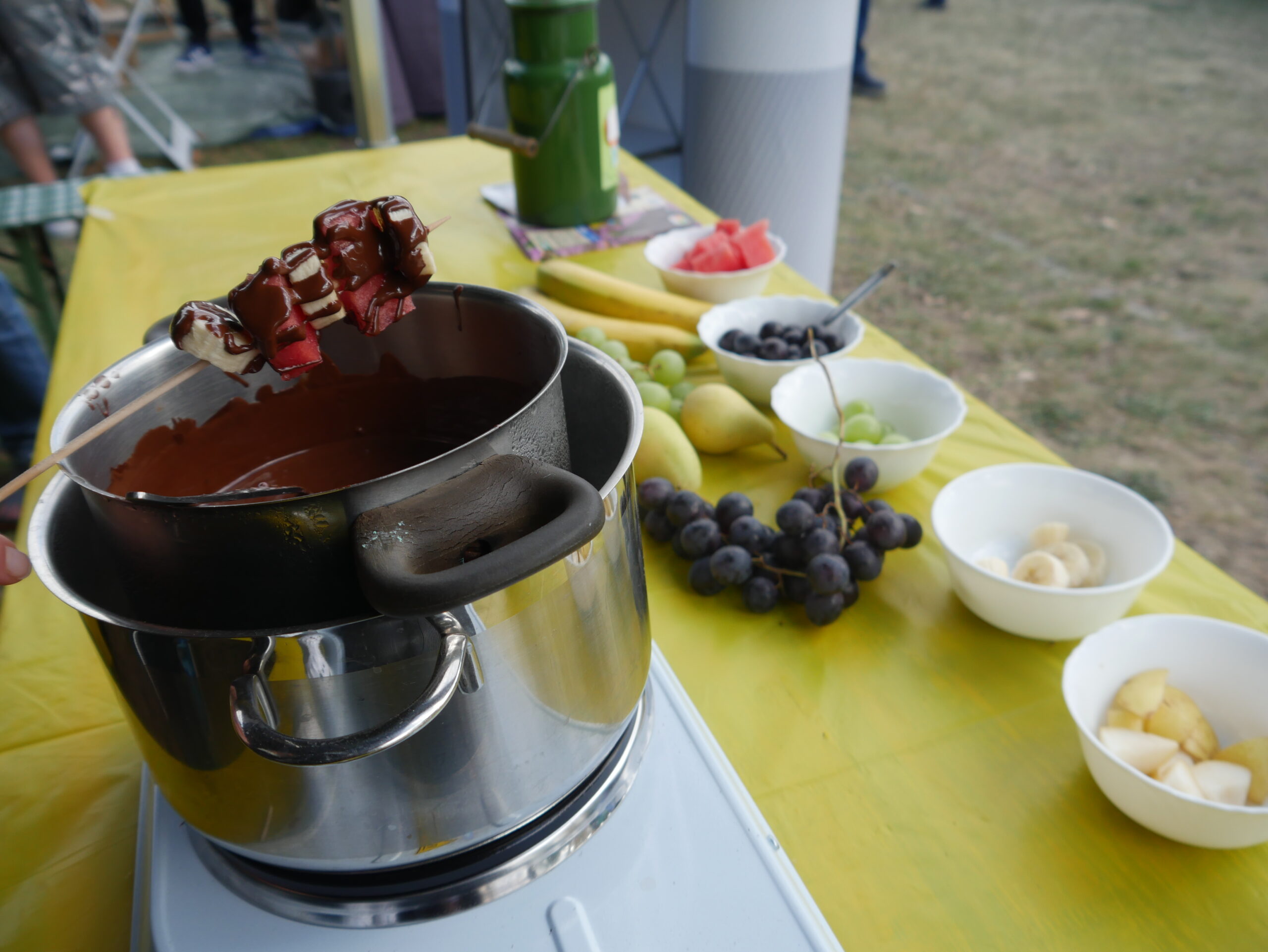 Die mitgebrachten Aktionen und Angebote, wie der faire Schokobrunnen, das Smoothie-Bike und das Weltverteilungsspiel, konnten immer wieder das Interesse der Passant:innen wecken und halfen beispielsweise zum Fairen Handel oder zu Themen wie globaler Gerechtigkeit ins Gespräch zu kommen.