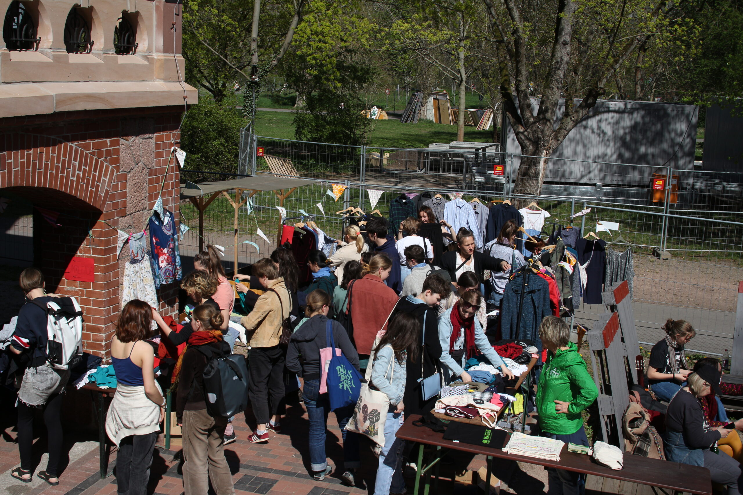 Gemeinsam haben wir mit 17 unterschiedlichen Formaten auf die Missstände in der globalen Textilindustrie aufmerksam gemacht und die Besucher:innen zur Reflexion ihres eigenen Konsumverhaltens angeregt. Dabei konnten wir unter anderem zeigen, wie viel Second-Hand- und öko-faire Mode Halle (Saale) bereits zu bieten hat und welche weitere Handlungsmöglichkeiten es neben dem Neukauf billig produzierter Textilien noch gibt. In unseren Workshops konnten die Teilnehmer:innen etwa das Färben mit Naturfarben und das Upcyceln verlebter Textilien praktisch erproben. Eine Ausstellung in der Innenstadt zeigte darüber hinaus Hallenser Visionen für nachhaltige Mode. Außerdem sind erste Schritte zu einer interdisziplinären Vernetzung zwischen Vertreter:innen der lokalen Zivilgesellschaft, Wirtschaft, Wissenschaft und Politik im Themenfeld gelungen.