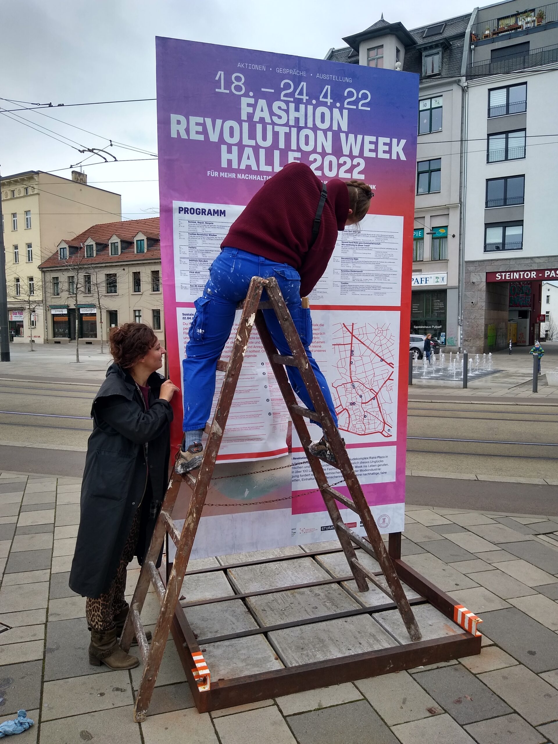Die Fashion Revolution Week (FRW), während der sich jedes Jahr im April Tausende Menschen für eine nachhaltigere und fairere Mode- und Textilindustrie einsetzen, war in Halle (Saale) auch in diesem Jahr wieder ein voller Erfolg. Ein großer Dank geht an alle, die die Aktionen der FRW 2022 tatkräftig unterstützt haben!