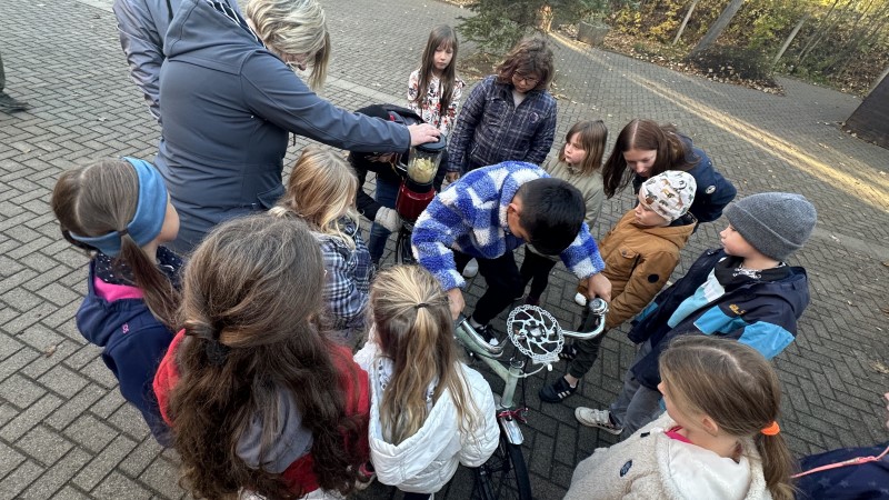 Ein zentrales Element des Aktionstages war das Smoothiebike, ein umgebautes Fahrrad, mit dem die Kinder ihre eigenen Smoothies mixen konnten. Der Fokus lag auf der Zubereitung gesunder, fairer und frischer Zutaten, wobei den Kindern gleichzeitig vermittelt wurde, wie nachhaltige Ernährung zur Förderung der Gesundheit und des Wohlbefindens beiträgt. Die Schüler erfuhren, wie wichtig es ist, bewusste und gesunde Entscheidungen zu treffen, um sowohl ihre eigene Gesundheit zu fördern als auch die Umwelt zu schonen.
